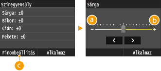 Beállíthatja a sárga, bíbor, ciánkék vagy fekete szín erősségét.