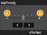 Beállíthatja a másolt kép élességét. Elmosódott szöveg és vonalak élesítése céljából növelhető, az újságfényképek megjelenésének javítása érdekében pedig csökkenthető az élesség.