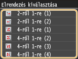 A <2-ről 1-re>/<4-ről 1-re> lehetőség használatával a másolási arány automatikusan csökkenthető (a másolási arány megjelenik a képernyőn). A
