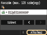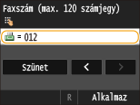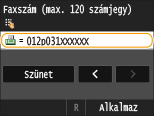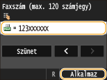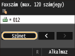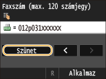 Érintse meg a <Szünet> lehetőséget, ha szükség esetén szünetet szeretne beszúrni a faxszám végére.