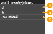 Akkor válassza, ha csak fogadási hiba esetén szeretné kinyomtatni a vételi eredményjelentést.