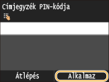Ha a címjegyzékhez PIN-kód van beállítva, exportálás közben megjelenik a <Címjegyzék PIN-kódja> képernyő. Adja meg a címjegyzék PIN-kódját, és érintse meg az <Alkalmaz> gombot. A címjegyzékadatok exportálásának megszakításához érintse meg a <Átlépés> gombot.