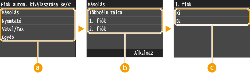 ). Amikor kézi adagolónyílásba helyezett papírra nyomtat, akkor mindig engedélyezve van az automatikus fiókválasztás.
