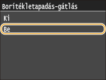 Válassza a <Ki> vagy a <Be> lehetőséget