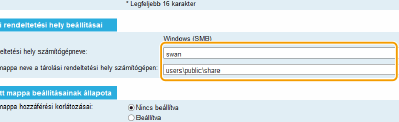 SMB-konfigurálás ). Ha szeretné beállítani, hogy a készülék a beolvasott dokumentumokat a hálózaton elérhető megosztott mappába mentse az SMB protokollal, akkor adja meg a megosztott mappa helyét egy számítógépről a Küldés-Funkció Beállító Eszközzel.