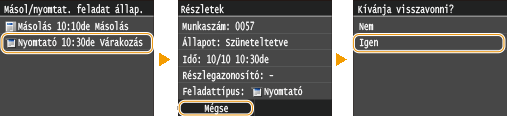 Megszakítás a Távoli felhasználói felület segítségévelA nyomtatás megszakítható a Távoli felhasználói felület [Feladat állapota] oldalán: A nyomtatott dokumentumok aktuális állapotának ellenőrzése