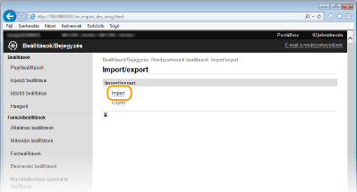 Betöltheti (importálhatja) a készülékről exportált adatokat. Másik készülék beállításait is importálhatja, ha a típusa megegyezik az Ön készülékének típusával.