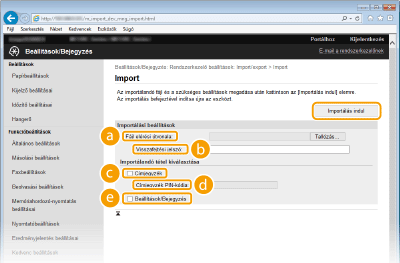 A készülék beállításainak importálásához jelölje be ezt a jelölőnégyzetet.