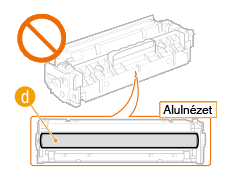 A festékkazetta kezeléseA festékkazettát mindig a fogóinál fogja meg. Ne érintse meg a dobfelületet (