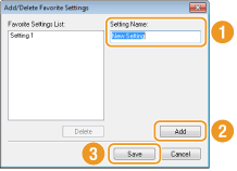 Írjon be egy nevet a [Setting Name] (Beállítás neve) részben, majd kattintson az [Add] (Hozzáadás)