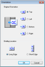 Ha a dokumentumok az adagolóban vannak, állítsa be a dokumentumok tájolását az [Orientation] (Tájolás) részben. Ha az adagolóba kétoldalas dokumentumot helyezett, akkor beállíthatja a [Binding Location] (Kötés helye) beállítást is.