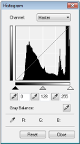 A hisztogram a képek fényerejének eloszlását ábrázoló diagram. A kép módosítása közben az előnézeti képen és hisztogramon nyomon követheti a változásokat. Ha az előnézeti képen meghatározza, hogy a képnek melyik részét szeretné a legvilágosabbá (vagy a legsötétebbé) tenni, akkor az eredeti kép fényegyensúlya a megadott résznek mint átlagnak a felhasználásával automatikusan történik. Hasonló módon az egyensúly a középtónus fényerejének mint átlagnak a felhasználásával is beállítható.
