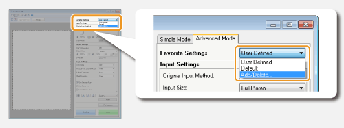 A színmódnak, képminőségnek és más beállításoknak a beolvasások alkalmával, egyenként történő megadása nehézkes. Ha a gyakran használt beállításokat bejegyzi Kedvenc beállításokként, akkor a bejegyzett beállítások egyszerűen behívhatók a beolvasáskor.