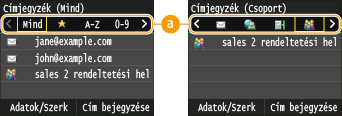 A címjegyzék lehetővé teszi, hogy egy előre bejegyzett címlistából válasszon rendeltetési helyet, illetve név szerint keressen a névvel együtt megadott rendeltetési helyek között.