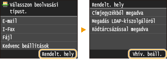 Választhat címet a legutóbb használt három rendeltetési hely közül is. Ha korábban használt rendeltetési helyet ad meg, akkor a készülék automatikusan beállítja az adott rendeltetési hely előző használata során megadott beolvasási beállításokat, például a fedettséget.