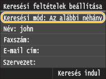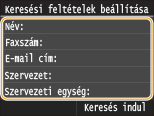 A rendeltetési helyek között személynevek, faxszámok, e-mail címek, szervezeti nevek és szervezeti egységek nevei szerint lehet keresni. Egyszerre több keresési feltétel is megadható.