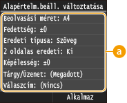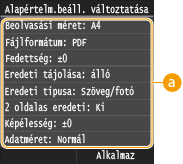 gomb megnyomásakor megjelennek. Ha ezeket az alapértelmezett beállításokat a gyakran használt műveleteknek megfelelően módosítja, azzal kiküszöbölheti az állandó beállítások konfigurálásához szükséges időt az egyes beolvasásoknál.