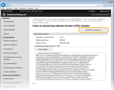 A tanúsítvány aláírási kérelmével (CSR) létrehozott kulcspár nem használható, amíg végre nem hajtja a bejegyzését. Miután a hitelesítésszolgáltató kiadta a digitális tanúsítványt, jegyezze be azt az alábbi művelet végrehajtásával.