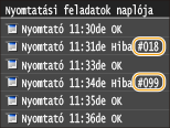 Ha nem sikerült a nyomtatás, nem tud faxot küldeni vagy fogadni, esetleg más hiba történik, akkor a hiba egy háromjegyű szám (hibakód) formájában megjelenik egy jelentésben vagy üzenetben a <Állapotfigyelés> képernyőn. Az alábbiakban összefoglaljuk az egyes hibakódok okait és megoldásait. A hibajelentés nyomtatásával és a jelentésbe foglalt információkkal kapcsolatban lásd: