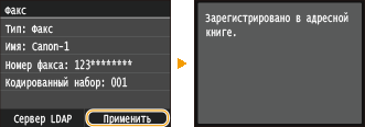 В соответствии с материалами, зарегистрированными на сервере LDAP, имя пользователя и номер факса/адрес электронной почты указанного адресата, зарегистрированного на сервере LDAP, будут введены автоматически