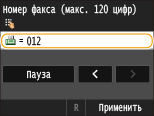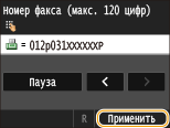 Коснитесь элемента <Пауза> для вставки паузы в конец номера факса.