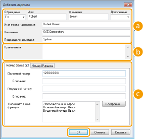 Введите номера факса. При необходимости номера можно разделять дефисами. Чтобы добавить пояснения номерам факса (например, «Домашний» или «Рабочий»), введите их в поле [Описание].