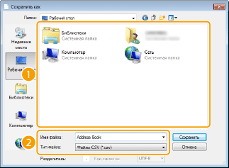 Сохраните данные адресной книги в папку, например [Мои документы], для которой у вас есть разрешение на запись.