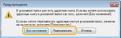 Если адресная книга уже существует в папке, выбранной в шаге 4, отобразится следующее сообщение. Чтобы использовать существующую адресную книгу, щелкните [без изменений]; если нужно использовать адресную книгу драйвера факса, щелкните [Перезаписать].