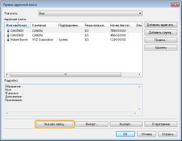 Импорт/экспорт данных адресной книги с помощью драйвера факса