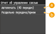 Выберите <Вкл.> для печати отчетов об отправке и приеме отдельно или <Выкл.>, чтобы печатать оба отчета на одном листе.