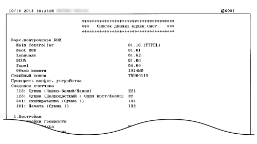Список данных пользователя Не включает списки настроек для <Настройки сети>, <Настройки управления системой> или части <Настройки факса>. Для проверки всех элементов настроек, включая <Настройки сети>, <Настройки управления системой> и все <Настройки факса>, напечатайте <Список данных администратора системы>.