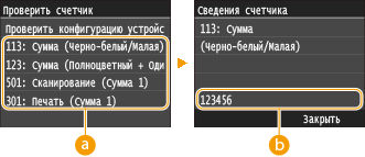 Можно проверить общее число использованных страниц отдельно для цветных и черно-белых распечаток. В это общее количество включены факсы, отчеты и списки, а также копии и распечатки данных с компьютеров.