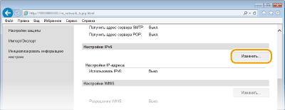 Выбор настроек на панели управленияПараметры IPv6 также можно настроить через <Меню> экрана <Главный>. Настройки IPv6
