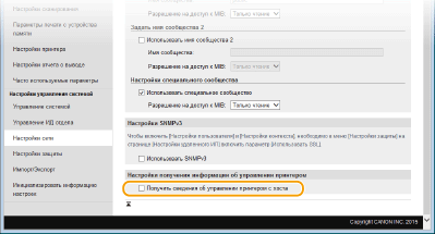 Установите этот флажок, чтобы разрешить мониторинг сведений об управлении принтером по протоколу SNMP. Для запрета мониторинга сведений об управлении принтером снимите этот флажок.