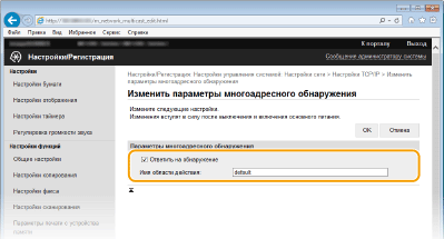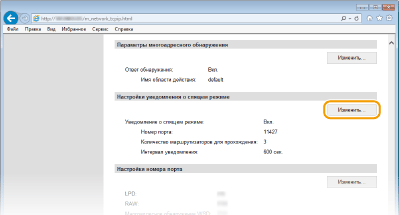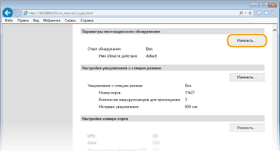 Щелкните [Изменить] в [Параметры многоадресного обнаружения].
