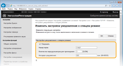 Установите этот флажок, чтобы уведомлять программное обеспечение управления о статусе питания аппарата. Если выбран параметр [Уведомить], аппарат блокирует нежелательный обмен данными в спящем режиме, что позволяет снизить общий уровень энергопотребления. [Номер порта]