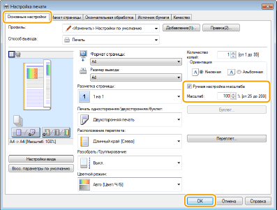 Параметры увеличения/уменьшения в некоторых приложениях приоритетнее, чем те же параметры в драйвере принтера.
