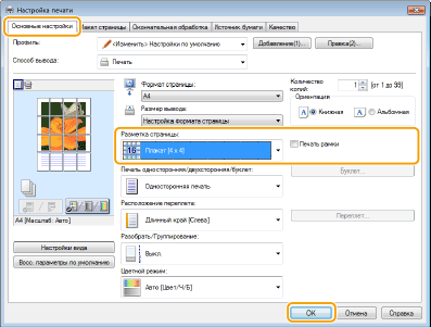 Отметьте флажком пункт [Печать рамки], чтобы добавить границы для печатаемых копий. Границы могут пригодиться в случае, если вы хотите склеить копии или отрезать поля.