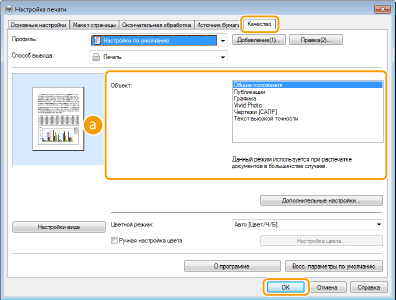 Выберите опцию, которая соответствует типу документа и цели печати. Например, выберите [Общие положения] для обычной печати или [Vivid Photo] для печати фотографий и изображений оптимального качества.