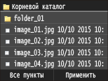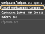 Изменить способ отображения можно в пункте <Сведения> (для имен файлов и дат изменения) и пункте <Изображения> (предварительный просмотр). Благодаря предварительному просмотру можно проверить содержимое файлов перед выбором файла для печати.