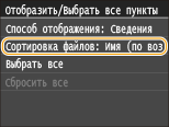 Можно изменить порядок сортировки файлов на запоминающем устройстве USB.