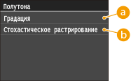 Можно выбрать способ печати для передачи полутонов (переходы между темными и светлыми частями изображения) для оптимального качества изображения. Коснитесь элемента <Градация> или <Стохастическое растрирование>.