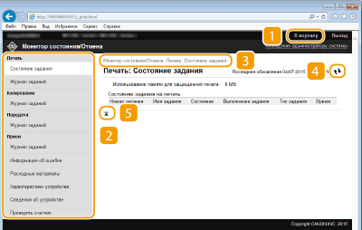 Отображение состояния документов для печати и журналы печати, копирования, отправки и получения документов. Можно также проверить состояние аппарата.