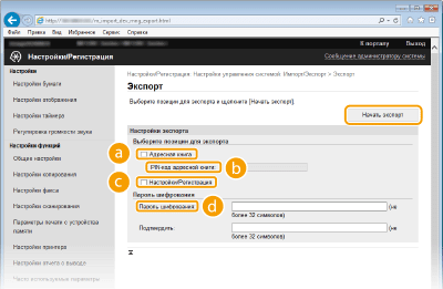Можно экспортировать такие данные, как записи адресной книги и настройки аппарата, и сохранить их на компьютер. Рекомендуем регулярно сохранять важные настройки.