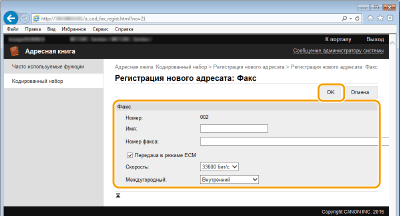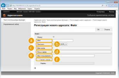 С помощью компьютера можно зарегистрировать или отредактировать адресную книгу аппарата. Укажите общую папку или адрес FTP-сервера.