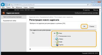 Выберите[Тип адресата для регистрации] и щелкните [OK].