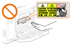 В процессе и сразу же после работы внутренние компоненты и область вокруг выводного лотка устройства очень горячие. Не прикасайтесь к этим областям, чтобы не получить ожоги. Кроме того, отпечатанная бумага сразу после вывода может быть горячей, поэтому обращайтесь с ней аккуратно. В противном случае можно получить ожоги.