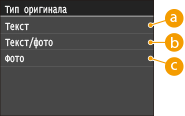 Качество копии изображения можно выбрать в зависимости от типа документа, например, документ, содержащий только текст или таблицы и графики, а также фотографии из журналов.