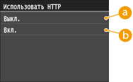 HTTP используется для установки соединения по сети, например в случае работы с аппаратом через Удаленный ИП. При использовании USB-соединения вместо соединения HTTP можно отключить HTTP, чтобы заблокировать злоумышленникам доступ к аппарату через неиспользующийся порт HTTP.