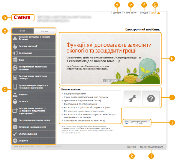 [Швидка довідка]/[Усунення несправностей]/[Обслуговування]